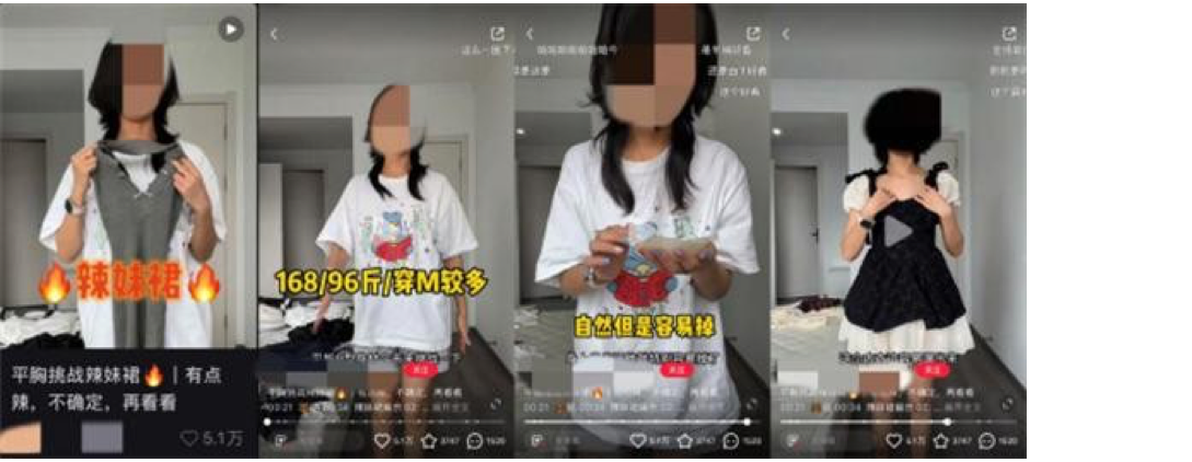 案例内容:首先表明“平胸辣妹”装备是“花重金”买的,然后博 主自嘲本身“平板”的身材,试穿装备给同款身材的姐妹试穿测评,穿搭示范让大家避坑踩雷,给大家真实的感觉。